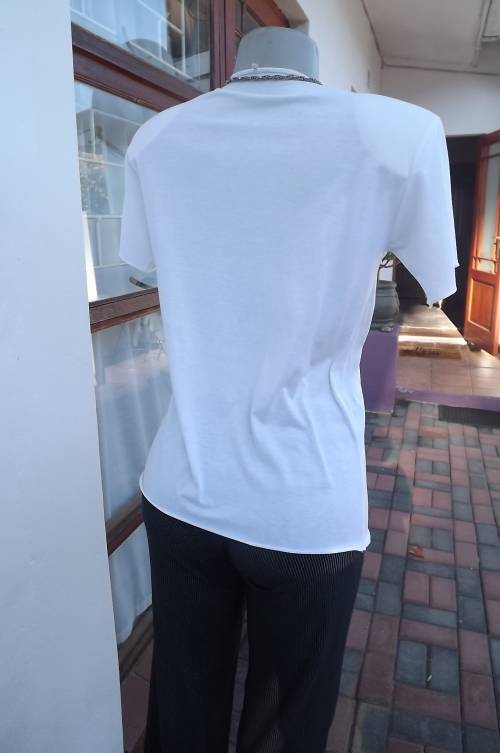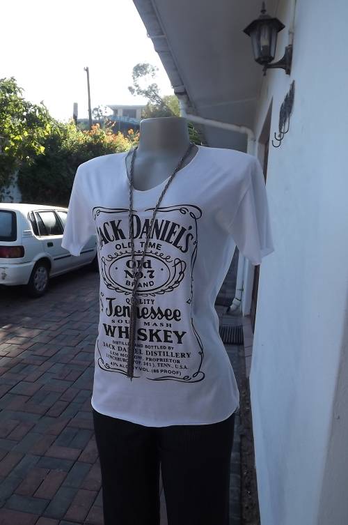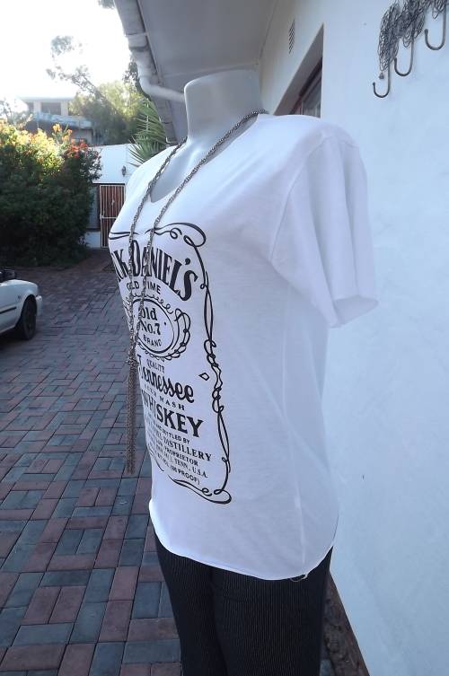 White JACK DANIELS v neck t shirt with short sleeves.Size 34/10.In polycotton.Made in Thailand