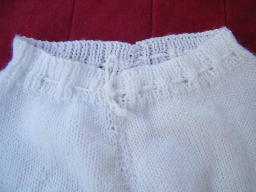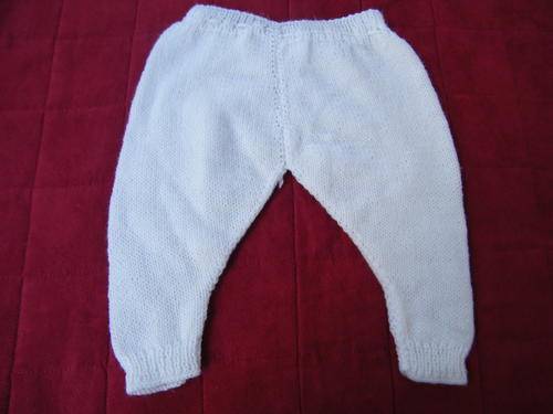White Knitted Baby Pants with Drawstring - waist 46cm, length 34cm, ankle 12cm, upper leg 30cm