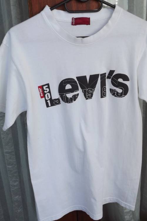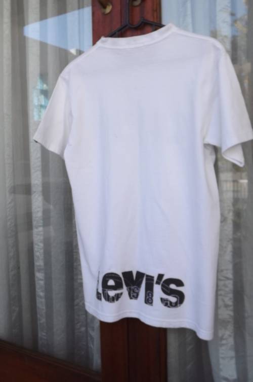White Levi T shirt with short sleeves.Ladies 34/10.Made in Thailand.Chest 95cm.Unisex