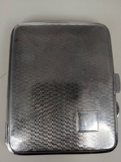 A vintage ladies cigarette case decorated with an image of an Iris on the front of the case and the reverse is engine turned. Marked; Made in England.