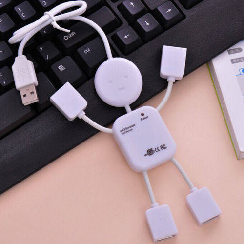 White New Cute Human Shape Laptop Notebook PC USB 2.0 Hub 4 Port Split Extention