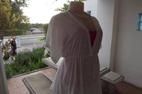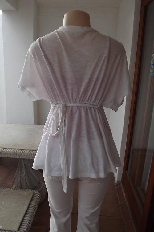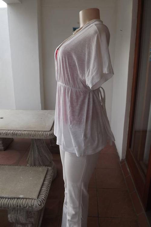 White Old Khaki top, size 36/12 with very low V. Elasticated under bustline. Short cut on sleeves.