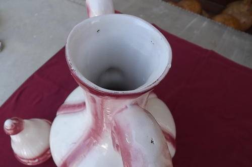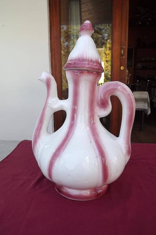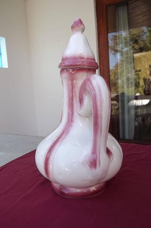 White/Pink Vintage very large Porcelain Jug Ornament with Lid - 44cm tall