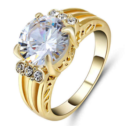 White Sapphire Ring Yellow Rhodium Plated Wedding Engagement Jewelry