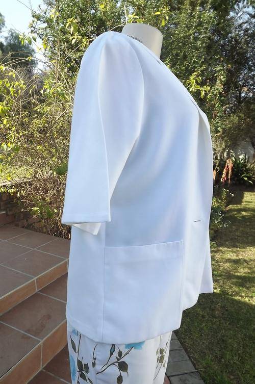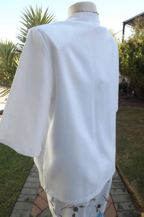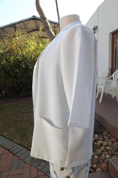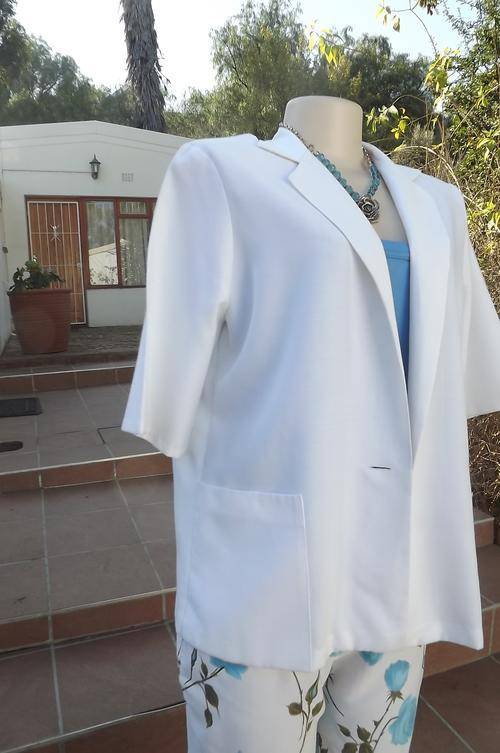 White straight cut summer short sleeve jacket by Selection size 40/16.Open collar and 2 pockets.