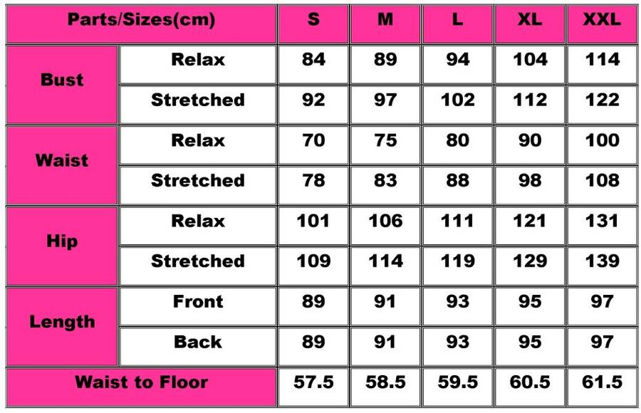 About Size: There may be a difference of +/- 3cm/1.5-inch due to hand measurement. These measurements are meant as a guide to help you select the correct size. Please take your own measurements and choose your size accordingly.
