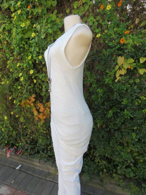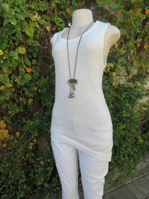 White vest style knitted long top in asymmetrical seam by NETWORK.Size 34/10.New condition.