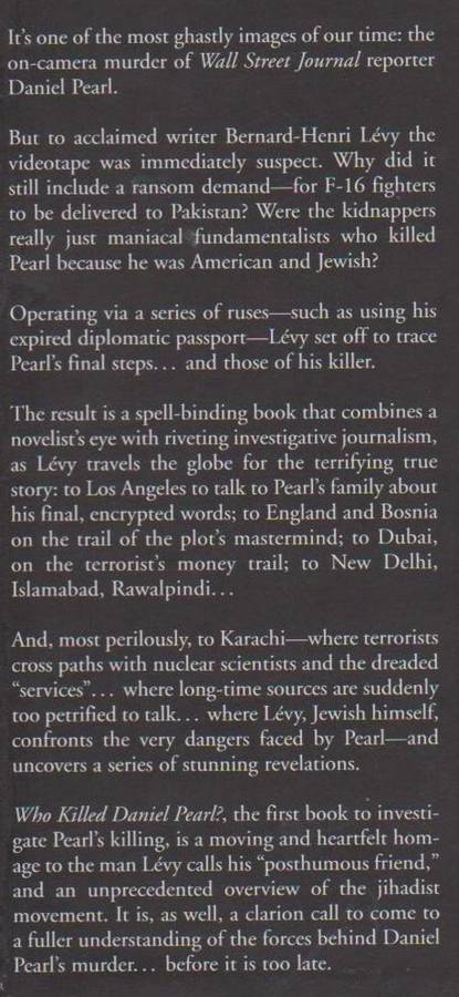 Who Killed Daniel Pearl?, by Bernard-Henri Levy. This hardcover 454 page book is in excellent condition and was published in 2003. The dustjacket is also in good condition.