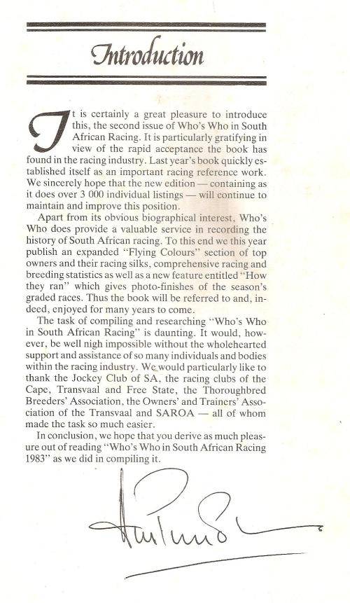 Who's Who in South African Racing Ed. C. R. R. Pinnell