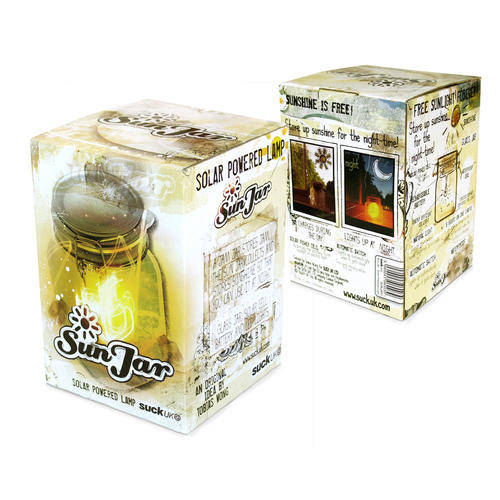 Really simple - just a solar panel, battery and LED light. A jam jar stores jam. A sun jar collects and stores sunshine so that you can get use it at night. In the day leave your Sun Jar outside - or in a sunny window for several hours to charge. At night your Sun Jar lights up automatically. It is made with a traditional Mason Jar and inside the sun jar is a highly efficient solar cell, rechargeable battery and LED lamp. When the jar is placed in sunlight, the solar cell creates an electrical current that charges the battery over the course of the day. This energy is then used at night to power the LED lamp inside the jar. The light emitted is diffused by the frosted jar and gives the appearance of sunlight. Sun Jars work best outdoors in DIRECT sunshine! Solar powered lamp that gives you free sunlight forever!
