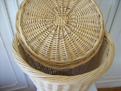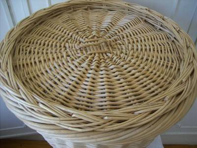 Beautifully finished wicker basket with lid, this basket looks like it would be suitable for laundry, it is in good condition & measures 470mm high with a top dia of 450mm & bottom dia 250mm.