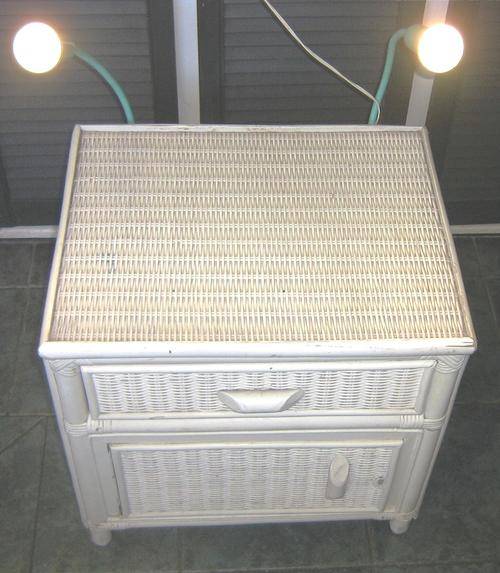 WICKER WHITE VINTAGE PEDESTAL /SIDE TABLE WITH LIGHTS