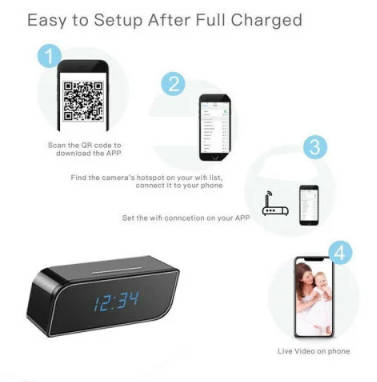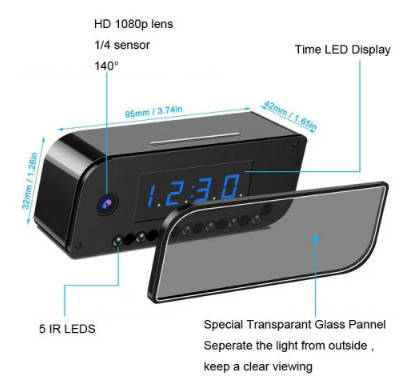 WiFi 1080P HD IP Hidden Spy Camera Video Recorder Wireless Security IR Cam Clock