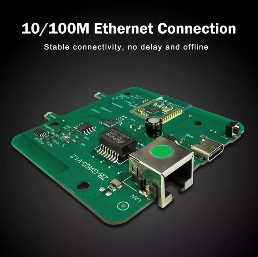 - Wired 100Mbps Fast Ethernet Connection Internet to Zigbee Wireless Devices