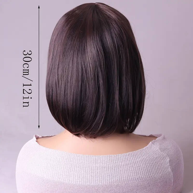 [Natural Style | Heat Resistant] Dark Brown | Bob Wig with Bangs - Natural Style Heat Resistant Synthetic Hair, 12 inches, Curly Hair Style for Daily and Cosplay, Adjustable Cap, Soft and Breathable Material, Wig