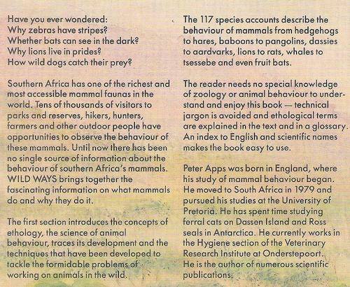 Wild Ways - Field Guide to the Behaviour of Southern African Mammals By: Peter Apps