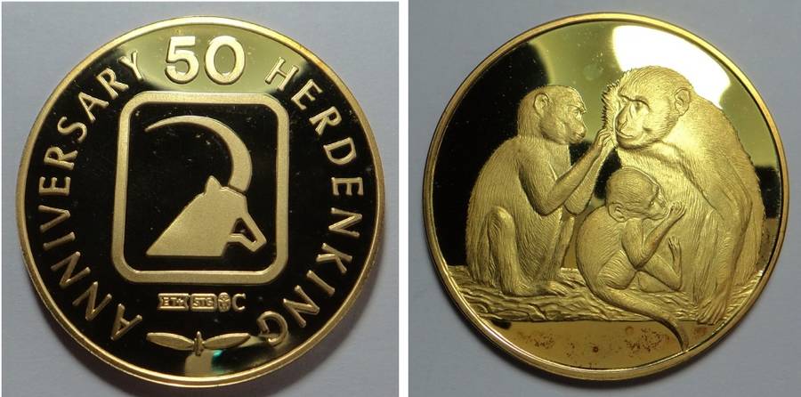 This medal was part of a set issued by the Africana Commemorative Mint from 1976 to 1978 to commemorate the 50-year anniversary of the Wildlife Society of Southern Africa. Each medal was struck in gold-gilded sterling silver, is 45 mm in diameter and weighs approx. 37 grams.