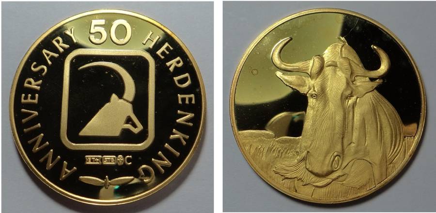 This medal was part of a set issued by the Africana Commemorative Mint from 1976 to 1978 to commemorate the 50-year anniversary of the Wildlife Society of Southern Africa. Each medal was struck in gold-gilded sterling silver, is 45 mm in diameter and weighs approx. 37 grams.