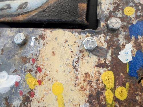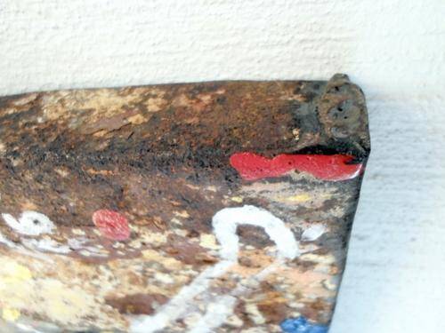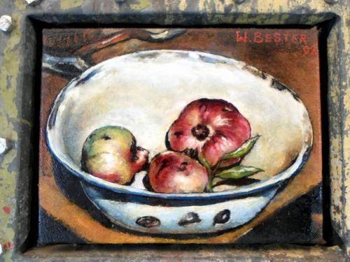A magnificent art piece! This painting is very unusual in that it features a still life oil painting of Pomegranates framed in a painted rusted metal piece! The metal is also painted and the result is a totally unique piece of investment art!! This beauty measures 38cm x 28cm. Do not loose out on this one, bid now!