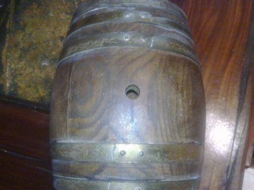A delightful wine barrel model for the bar. It measures 26cm high and the rim measures 17cm. It has real character with aged wood and patina copper rings. Every bar should have one and this price it is a no brainer!!