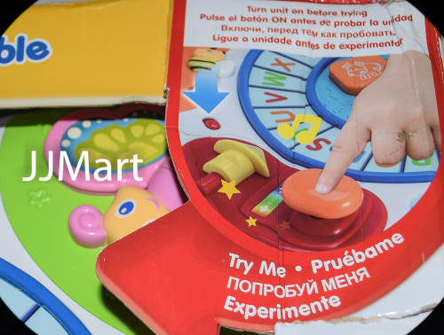 • Train whistle, gearshift, spinner, sliding bee and flapping butterfly with fun phrases, sound effects and music