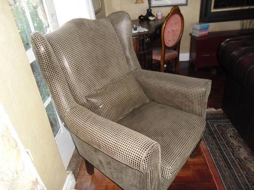 Brown and beige Wing back Chair hardly used