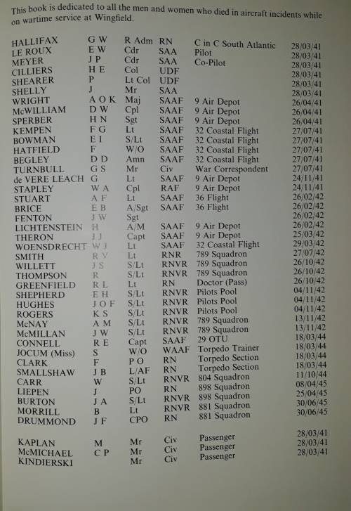 Wingfield was the airfield used by the SAAF during WW2, and after the war by the Royal Navy as a Fleet Air Arm. Well researched, covering aviation pioneers from 1908, aviation records, World War 2, etc. Copy Number 1044 of an edition limited to 1500 copies. Original laminated pictorial boards, titling in black on the spine and the upper board. 8 prelims, 312 pages and profusely illustrated with black and white photographs.