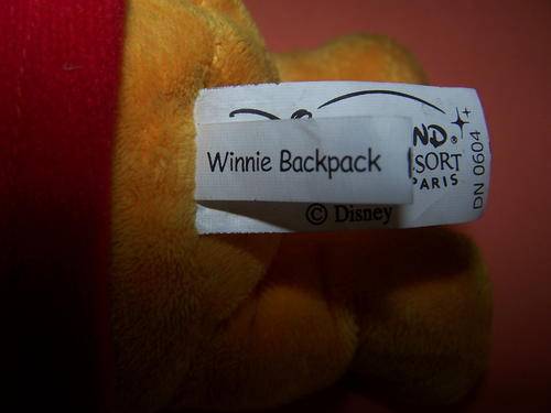 Lovely Winnie Backpack based on 'Winnie the Pooh' works by A A Milne & E H Shepard. Disneyland Resort - Euro Disney, France.