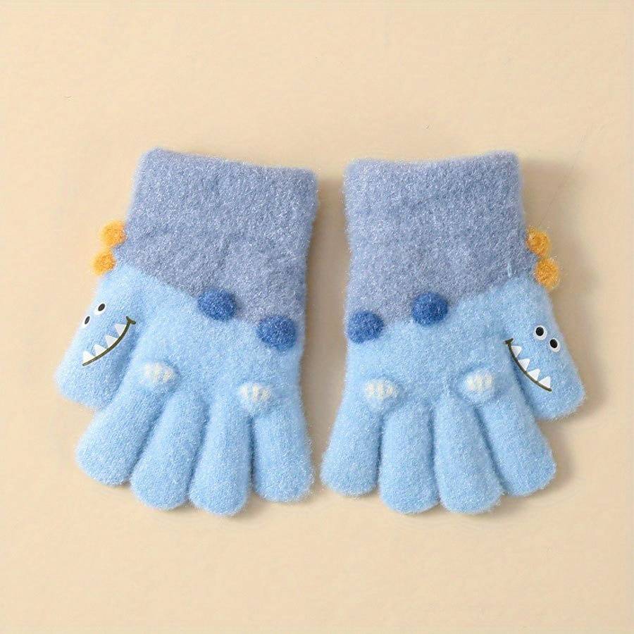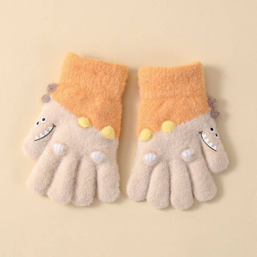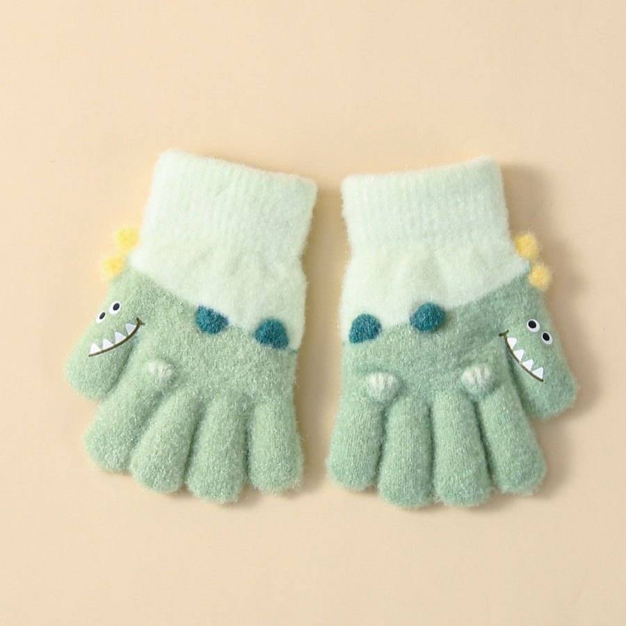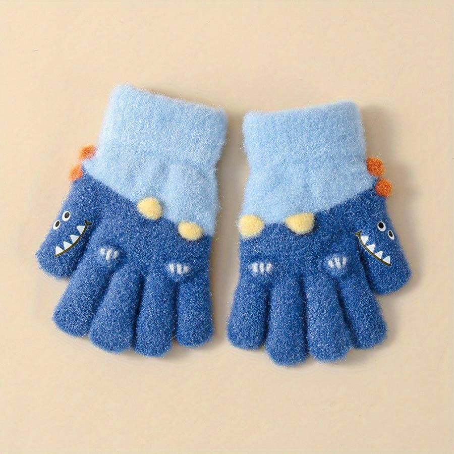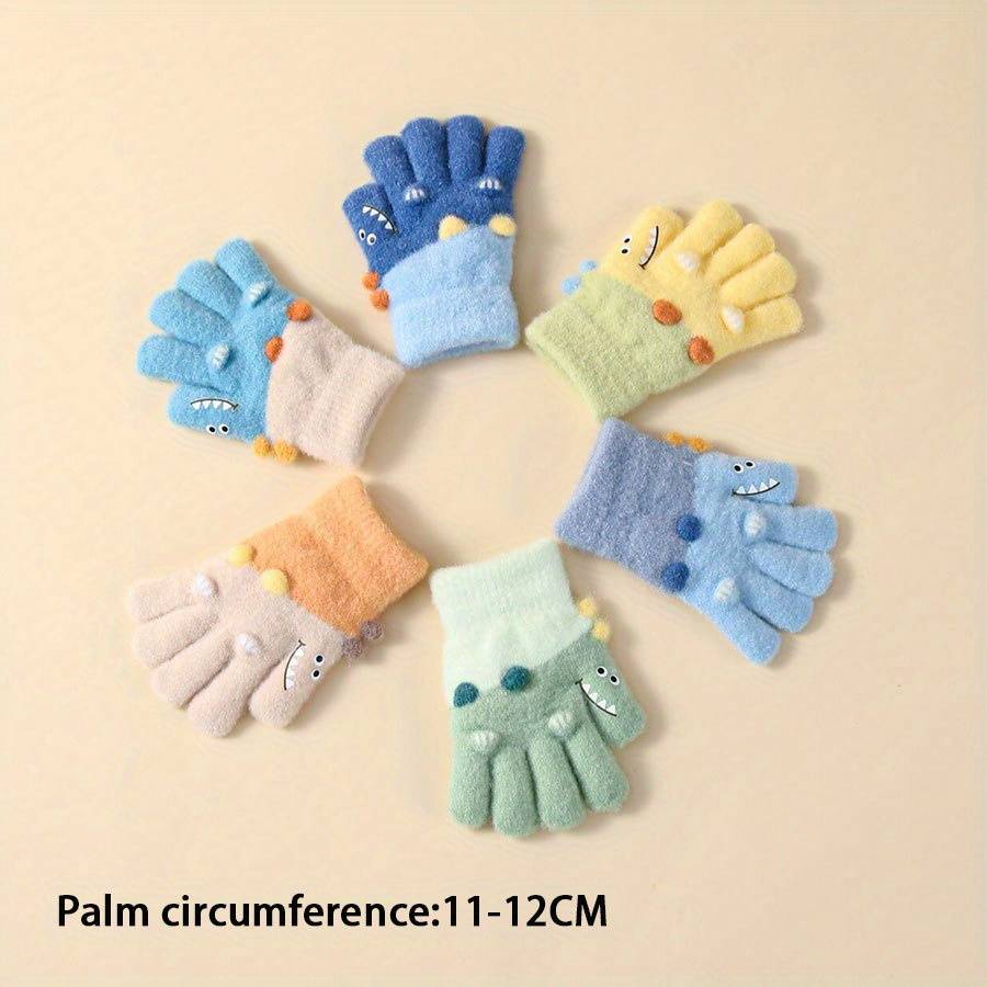 1 Pair Winter Girls' Full-Finger Gloves Warm Soft Stretchy Split-Finger Outdoor