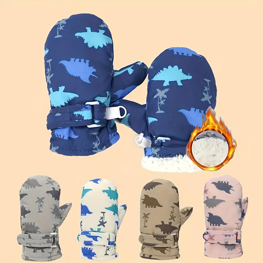 Huuflyty Baby Ski Gloves High Quality Quick-Dry Thermal Insulated Dinosaur Print