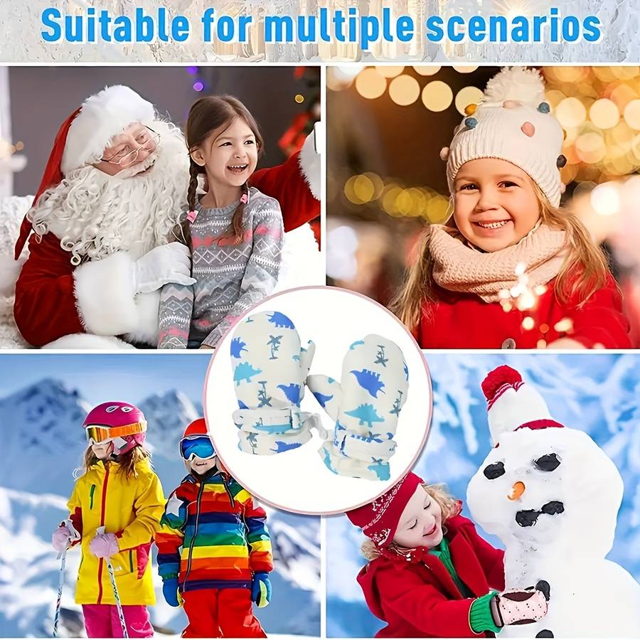 Huuflyty Baby Ski Gloves High Quality Quick-Dry Thermal Insulated Dinosaur Print