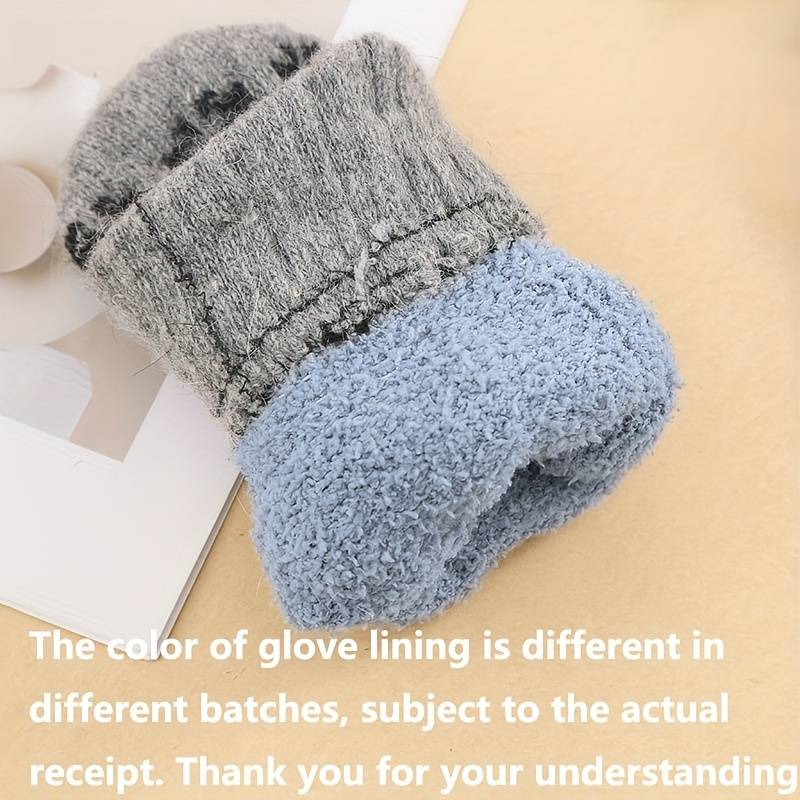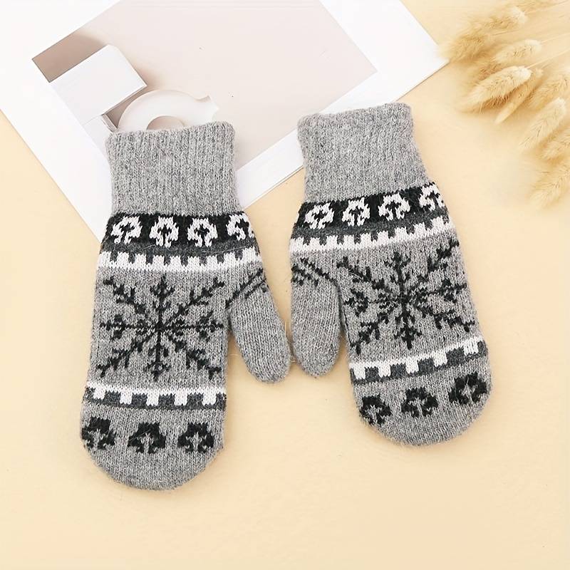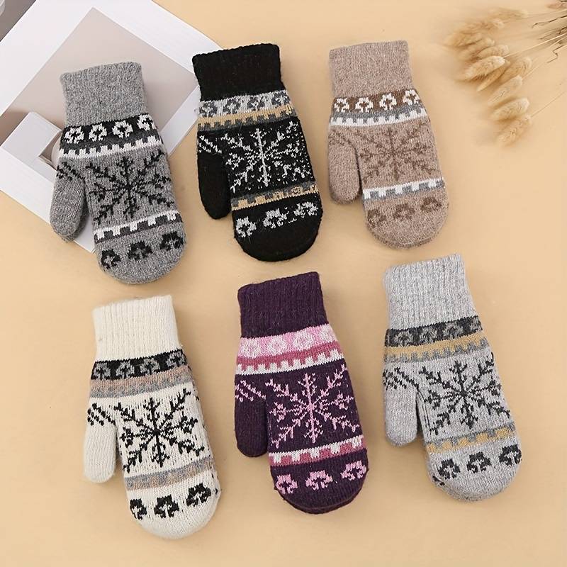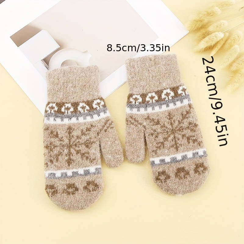 1 Pair Women's Thermal Fleece-Lined Winter Gloves with Snowflake Pattern, Elasti