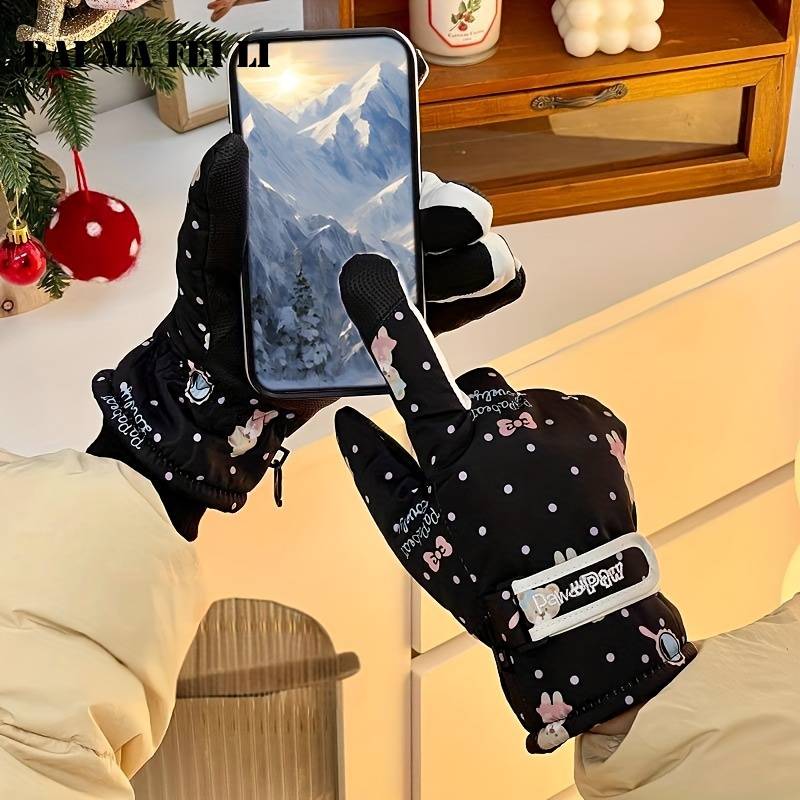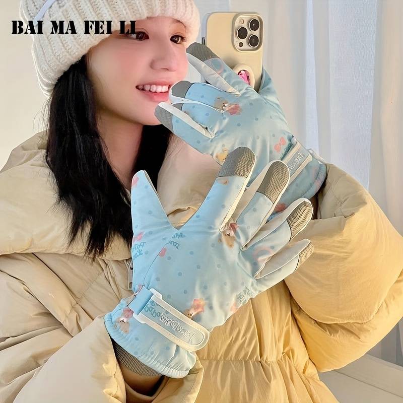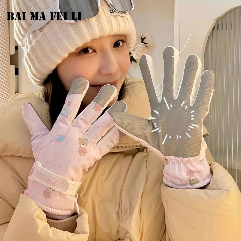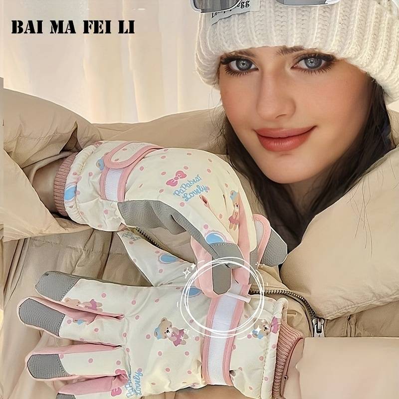Winter Gloves Color Light Purple color Light Purple Cartoon Graphic Ski Gloves for Women, Fleece-Lined Windproof and High Quality Ou Operation Instruction:Hand wash only Weaving Method:Knit Fabric Material:Polyester Season:Fall/Winter Brand:BAI MA FEI LI