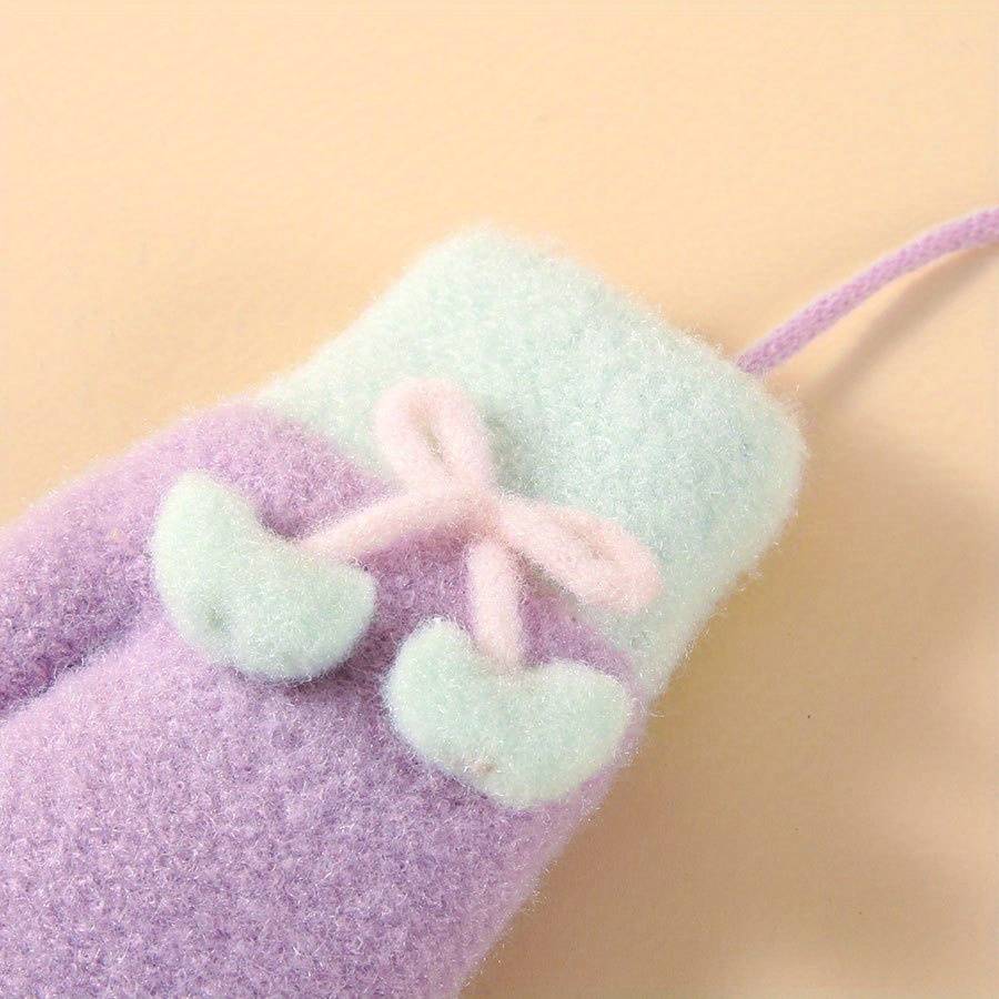 1 Pair Infant Warm Gloves with Plush Lining, Full Coverage Neck Hanging Gloves f