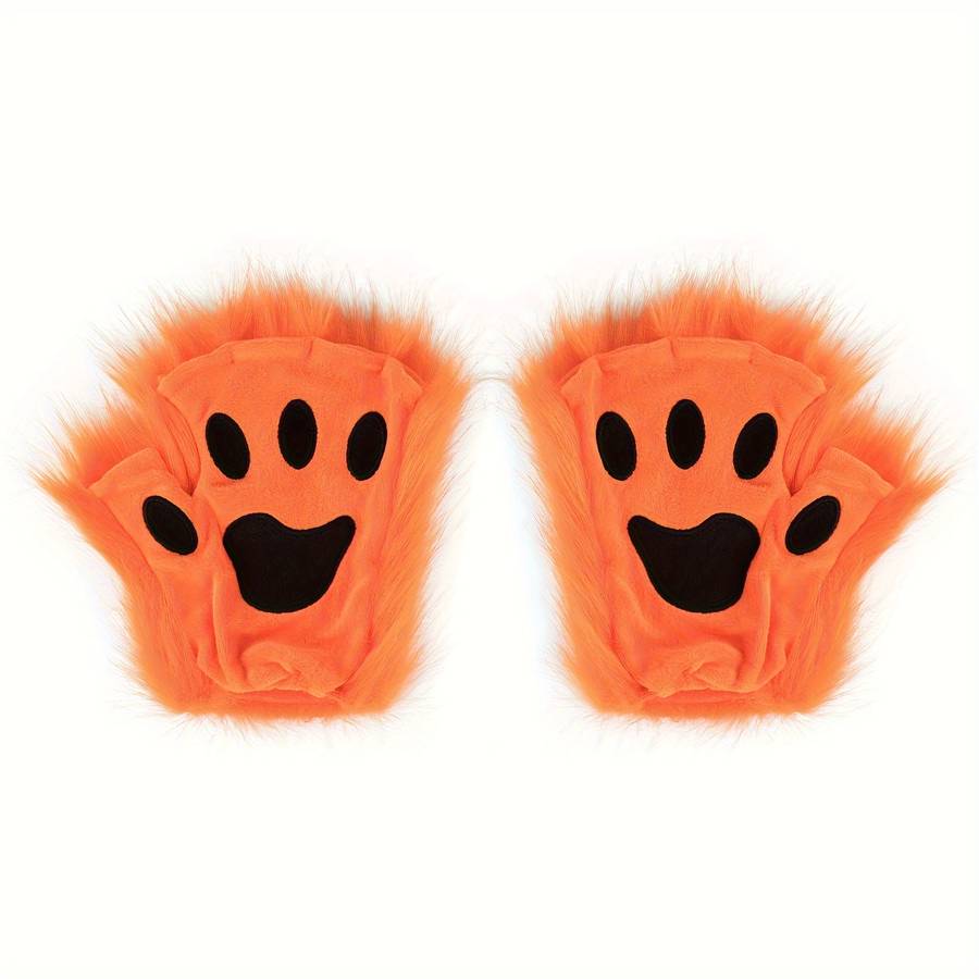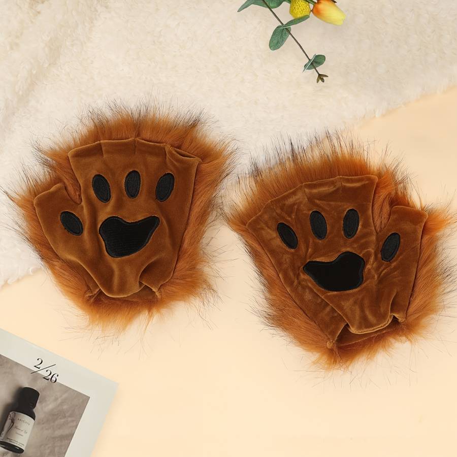 Wolf Paw Fingerless Gloves, Faux Fur Acrylic Mittens, Winter Warm Animal Theme P