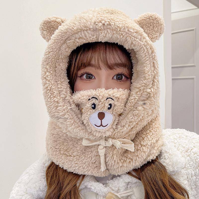 winter hat color Bear Mask Cap beige color Bear Mask Cap [beige]: Bear Shaped Mask Hat Scarf Integrated Women's Winter Thickened Warm And Coldproo Operation Instruction:Hand wash only Occasion:New year Suitable types:Fitted Special Features:Lightweight Theme:Occasion Closure Type:Toggle Weaving Method:Knit Fabric Material:Acrylic Season:Fall/Winter