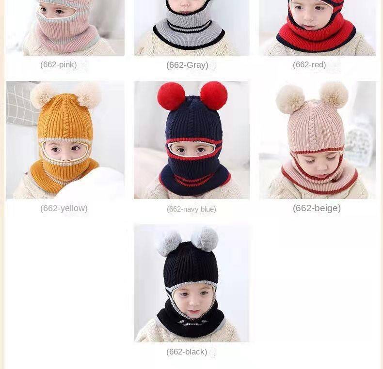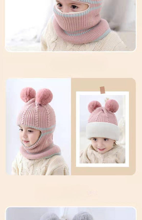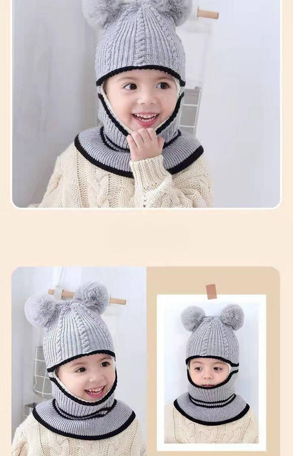 winter hat color grey color grey: Youngsters's Hat Mask Scarf Integrated Winter Velvet Thickened Warm Knitted Cap Composition:100% Acrylic