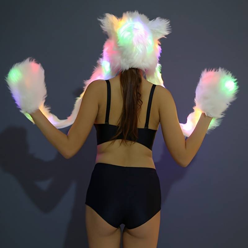 winter hat color White size One size color White:size One-size LED Hat, Scarf and Gloves Three-in-One Single