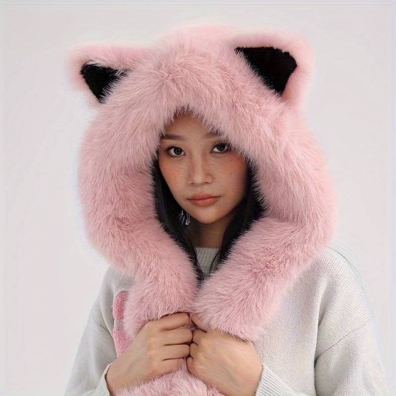 winter hat color Coffee Color color Coffee Color: Women's Cute Cartoon Spirit Animal Hat with Warm Scarf and Gloves Pocket, Ear Mu Occasion:Valentines-day Suitable types:Inelasticity Special Features:Ear warmer Theme:Animals Closure Type:Drawstring Material:Polyester Cap Type:Furry Craftsmanship:Tie-dyeing Random Type:random decorative accessories Composition:100% Polyester Operation Instruction:Hand wash or professional dry clean Weaving Method:Knitting