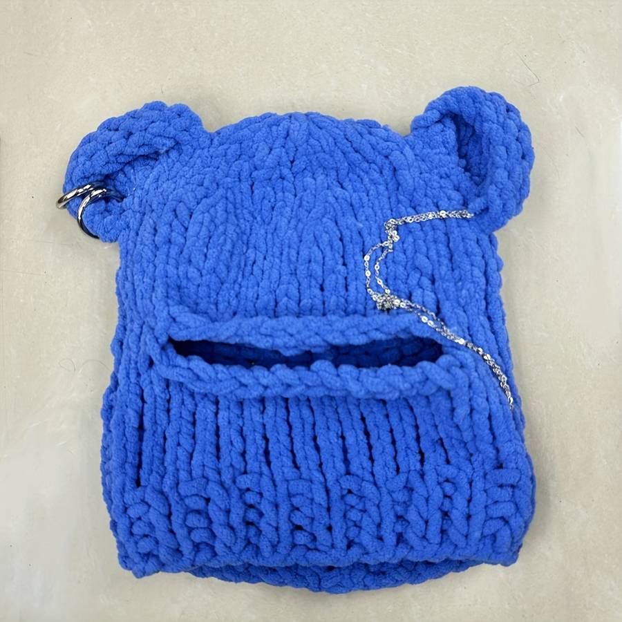 winter hat color Blue color Blue: 1pc Unisex Blue Fleece-Lined Hat with Bear Ears & Chain Detail - Elastic Stretch Occasion:Halloween Suitable types:Elasticity Special Features:Lightweight Theme:Occasion Material:Polyester Cap Type:Furry Craftsmanship:Knitting Composition:100% Polyester Operation Instruction:Hand wash,do not dry clean