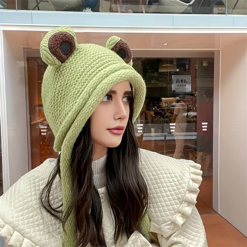 winter hat color Frog Pink color Frog Pink: Cute Frog Beanie Hat for Women - Cozy Winter Cap with Ear Flaps, Lightweight Acr Occasion:Christmas Suitable types:Elasticity Special Features:Lightweight Theme:Cartoon Closure Type:Drawstring Material:Acrylic Cap Type:Beanie Craftsmanship:Printing Random Type:random decorative accessories Operation Instruction:Hand wash or professional dry clean Weaving Method:Woven