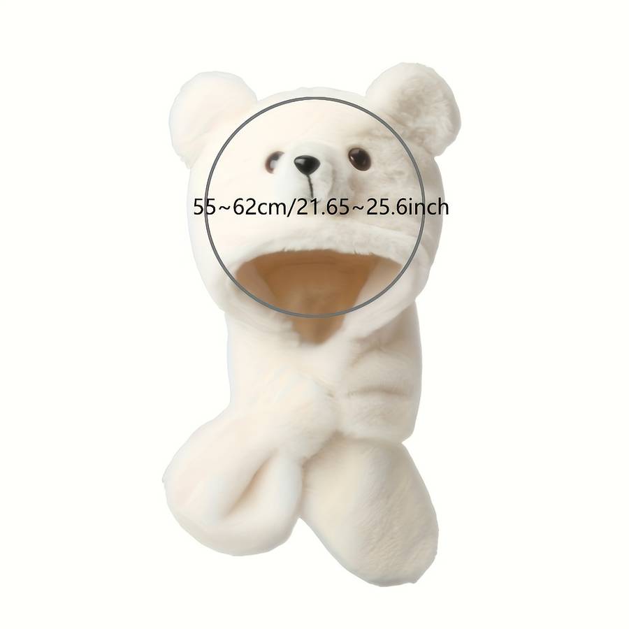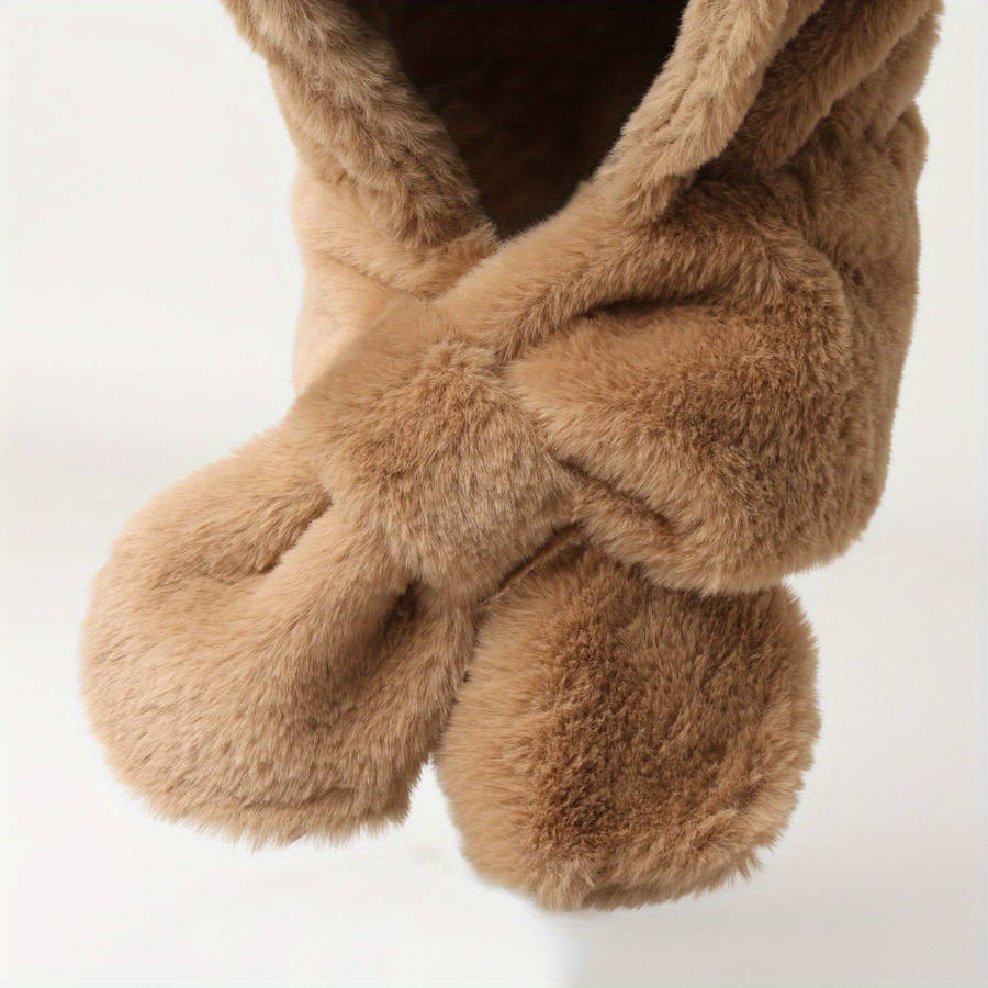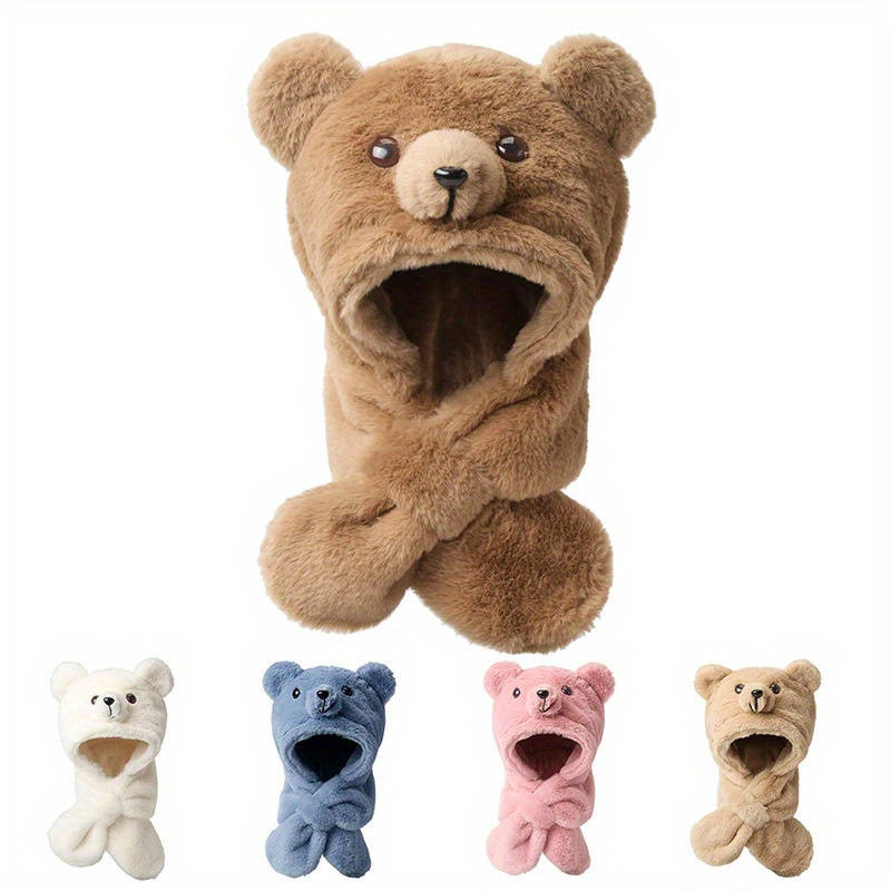 winter hat color Khaki size 1 color Khaki:size 1 Women's Plush Bear Ear Warmer Hat with Integrated Scarf - Soft Faux Fur Winter B Suitable types:Fitted