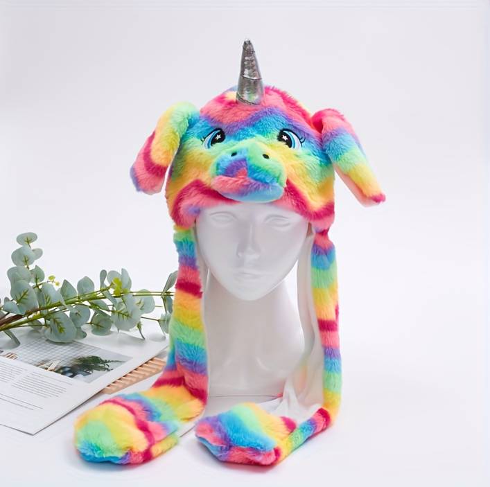 winter hat color Purple color Purple: Women's Cute Cartoon Rainbow Unicorn Plush Hat with Fluffy Ears & Horn - Adjusta Occasion:Homecoming Suitable types:Inelasticity Special Features:Lightweight Theme:Cartoon Closure Type:Drawstring Material:Polyester Cap Type:Furry Craftsmanship:Printing,Tie-dyeing Random Type:not random Operation Instruction:Hand wash,do not dry clean Weaving Method:Knitting