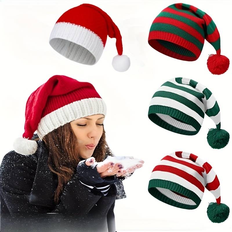 winter hat color Red, Green And White Stripes color Red, Green And White Stripes: Cozy Knit Christmas Hats for Women & Men - Warm Winter Beanie with Festive Red & Operation Instruction:Hand wash only Material:Fabric Whether There Are Feathers:No Power Supply:Use Without Electricity