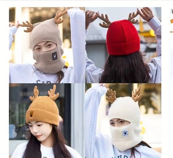 winter hat color Red size One size color Red:size One-size Red Reindeer Antler Beanie with Integrated Scarf, Acrylic Knit Winter Hat, Thick Operation Instruction:Hand wash only