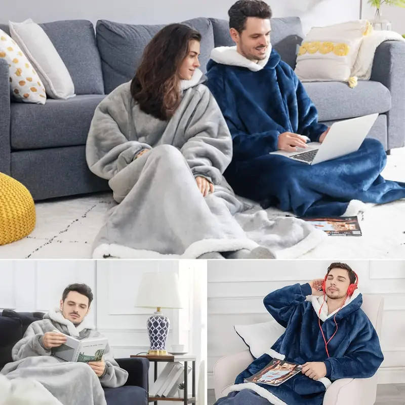 Winter Plush One-Piece Pajamas Fleece Hoodies for Adults Suitable for Family Use