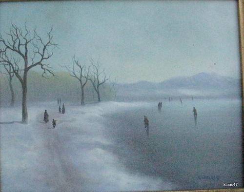 WINTER : R WITCHARD : FRAMED SIZE 31.5 x 26.3 cm : OIL ON BOARD
