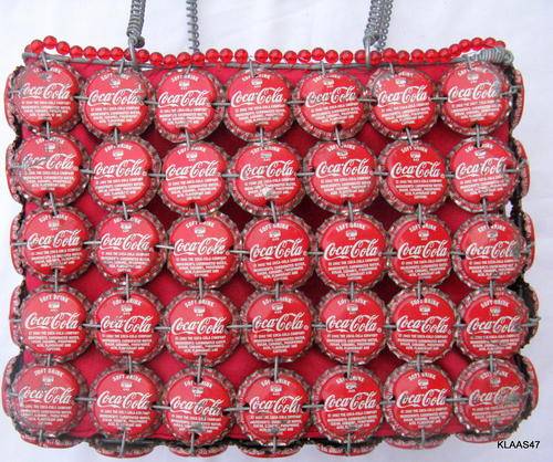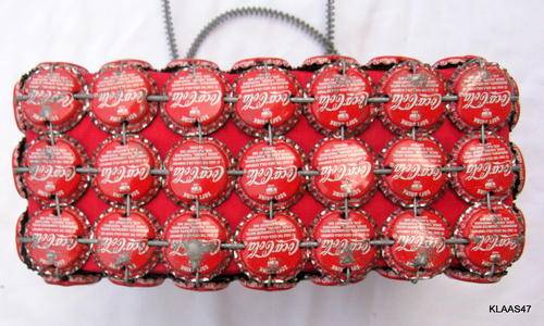 WIRE HANDBAG : 22x17x10cm : ZIP TOP : COCA-COLA BOTTLE TOPS