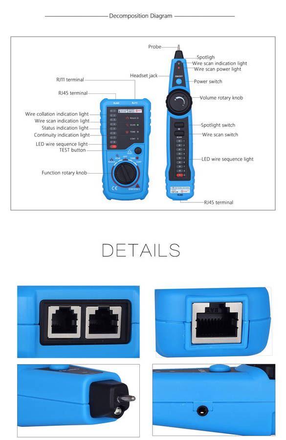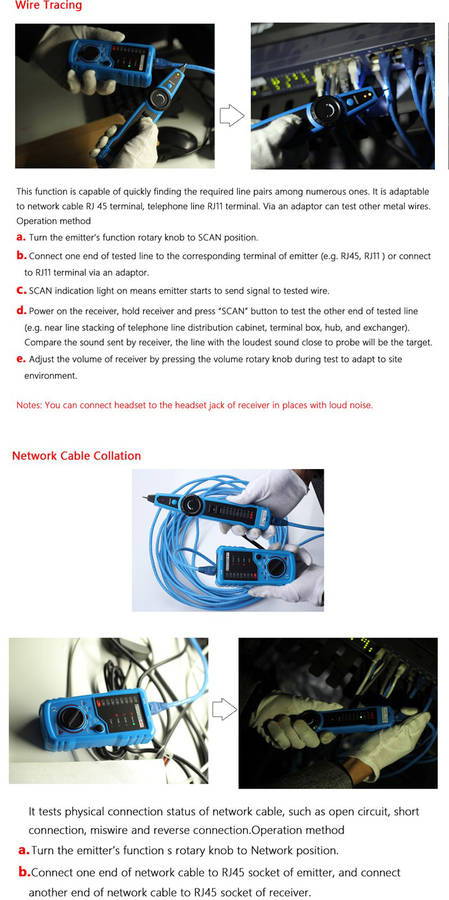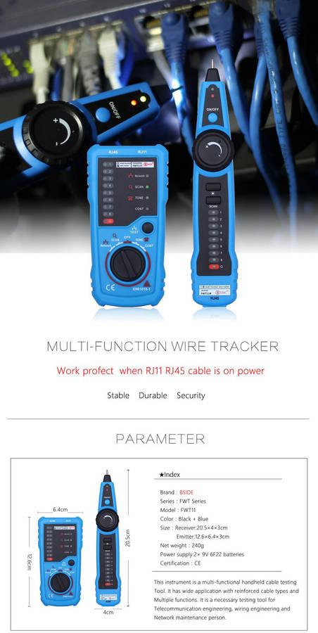A necessary testing tool for telecommunication engineering, wiring engineering and network maintenance person.