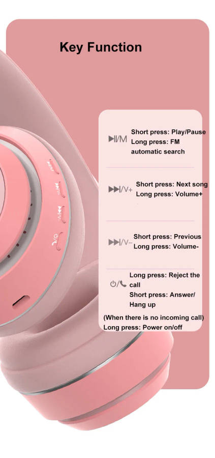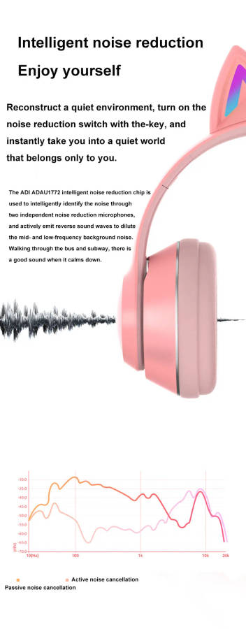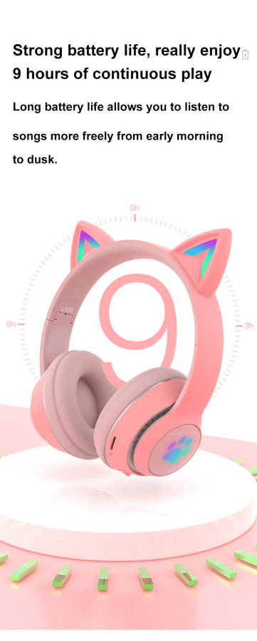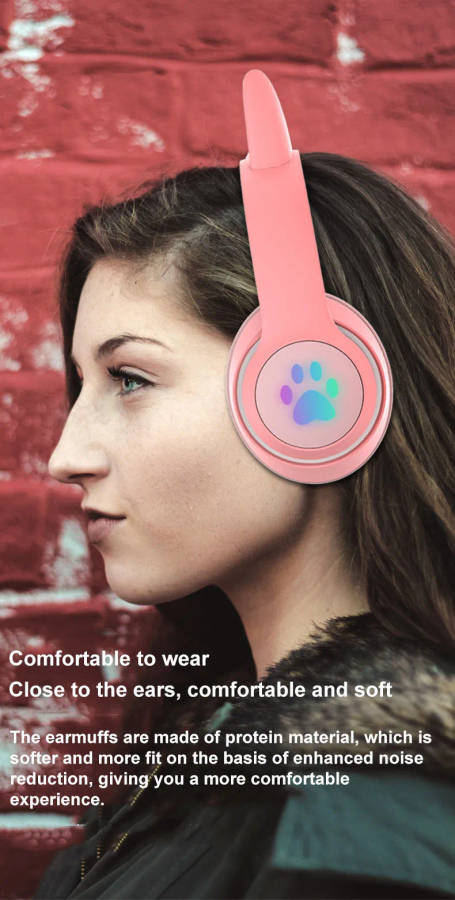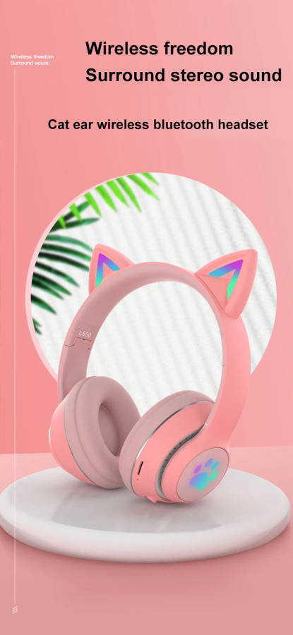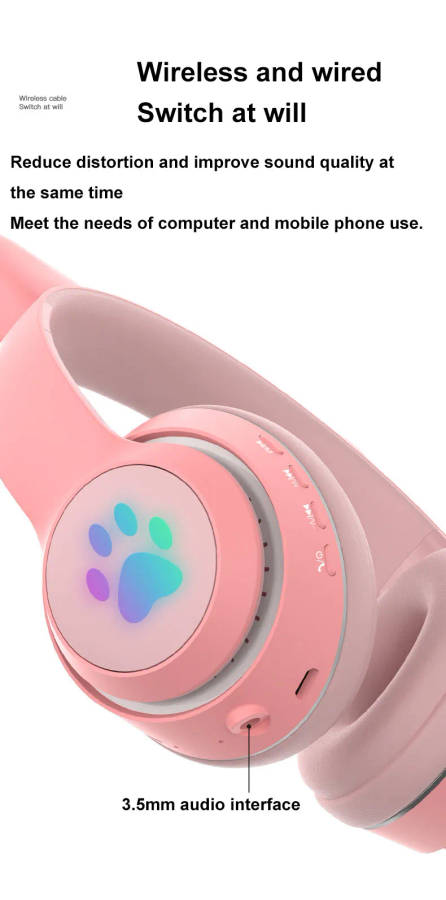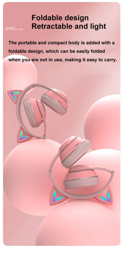 Wireless Bluetooth 5.0 Headphone Glowing Cat Ear Headset Stereo Music Player with MIC for Handsfree Support TF Card AUX Play